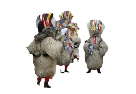 (fury, horned figures w/ massive cowbells) parade who jump & make noise to scare away winter / welcome spring
